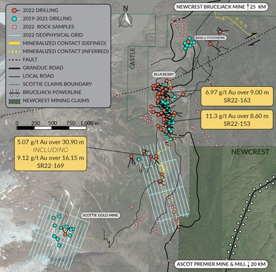 SCOTTIE RESOURCES EXTENDS STRIKE OF BLUEBERRY CONTACT ZONE TO 1.2 KILOMETERS WITH INTERCEPT OF 9.12 G/T GOLD OVER 16.15 METRES newswire.ca