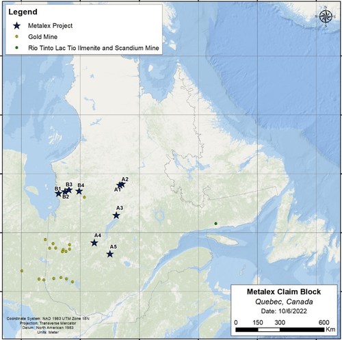 KELOWNA, BC, Oct. 17, 2022 /CNW/ - Metalex Ventures Ltd. (TSXV: MTX) (the "Company") is pleased to report that four additional claim blocks have been applied for on its 100% owned Quebec project.