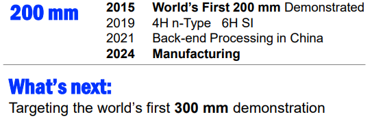 Coherent is back to mentioning 300mm again. They said a couple years ago they wanted to demonstrate it in a reasonable amount of time.