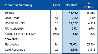 The Company sold a total of 5,455 ounces of gold in the first half of Q4 2022 (from October 1st through November 15th), putting the Company on track for record gold sales in Q4 2022.