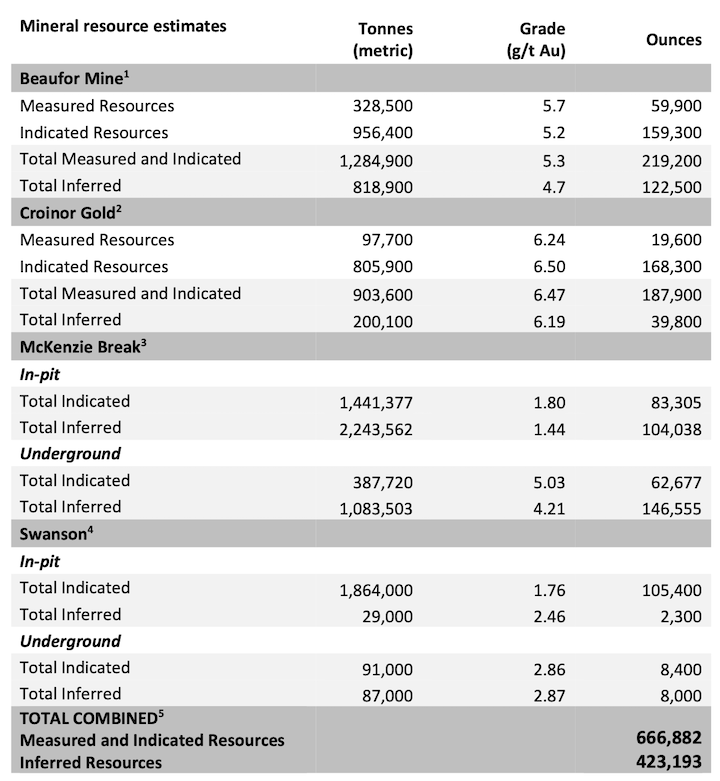 Source: NI 43-101 Technical Report and Mineral Resource Estimate for the Beaufor Mine Project, October 13, 2021, Val-d’Or, Québec, Canada, Charlotte Athurion, P. Geo., Pierre-Luc Richard, P. Geo., and Dario Evangelista, P. Eng., BBA Inc. Source: NI 43-101 Technical Report and Mineral Resource Estimate for the Croinor Gold Project, June 17, 2022, Val-d’Or, Québec, Canada, Olivier Vadnais-Leblanc, P.Geo., Carl Pelletier, P.Geo. and Eric Lecomte, P.Eng., InnovExplo Inc. Source: NI 43-101 Technical Evaluation Report on the McKenzie Break Property, October 14, 2021, Val-d’Or, Québec, Canada, Alain-Jean Beauregard, P.Geo., Daniel Gaudreault, P.Eng., of Geologica Groupe-Conseil Inc., and Merouane Rachidi, P.Geo., Claude Duplessis, P.Eng., of GoldMinds GeoServices Inc. Source: NI 43-101 Technical Report and Mineral Resource Estimate for the Swanson Project, January 22, 2021, Val-d’Or, Québec, Canada, Christine Beausoleil, P. Geo. and Alain Carrier, P. Geo., InnovExplo Inc. Numbers may not add due to rounding. FOR