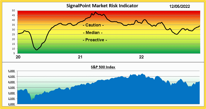 The v-Wave is a bit more optimistic right now but certainly not bullish. Both the MRI and the v-Wave were intended to give us a barometer by which to gauge cash reserve starting and ongoing levels for AIM. I further have designated that individual stocks should carry more cash than mutual funds or ETFs and other diversified investments. In both histories, you can see that the Covid lows were suggesting new and ongoing AIM accounts were healthy with very low levels of cash compared to the Median value. Both has extended periods of caution and higher cash suggestions during the 2021 bullish period.