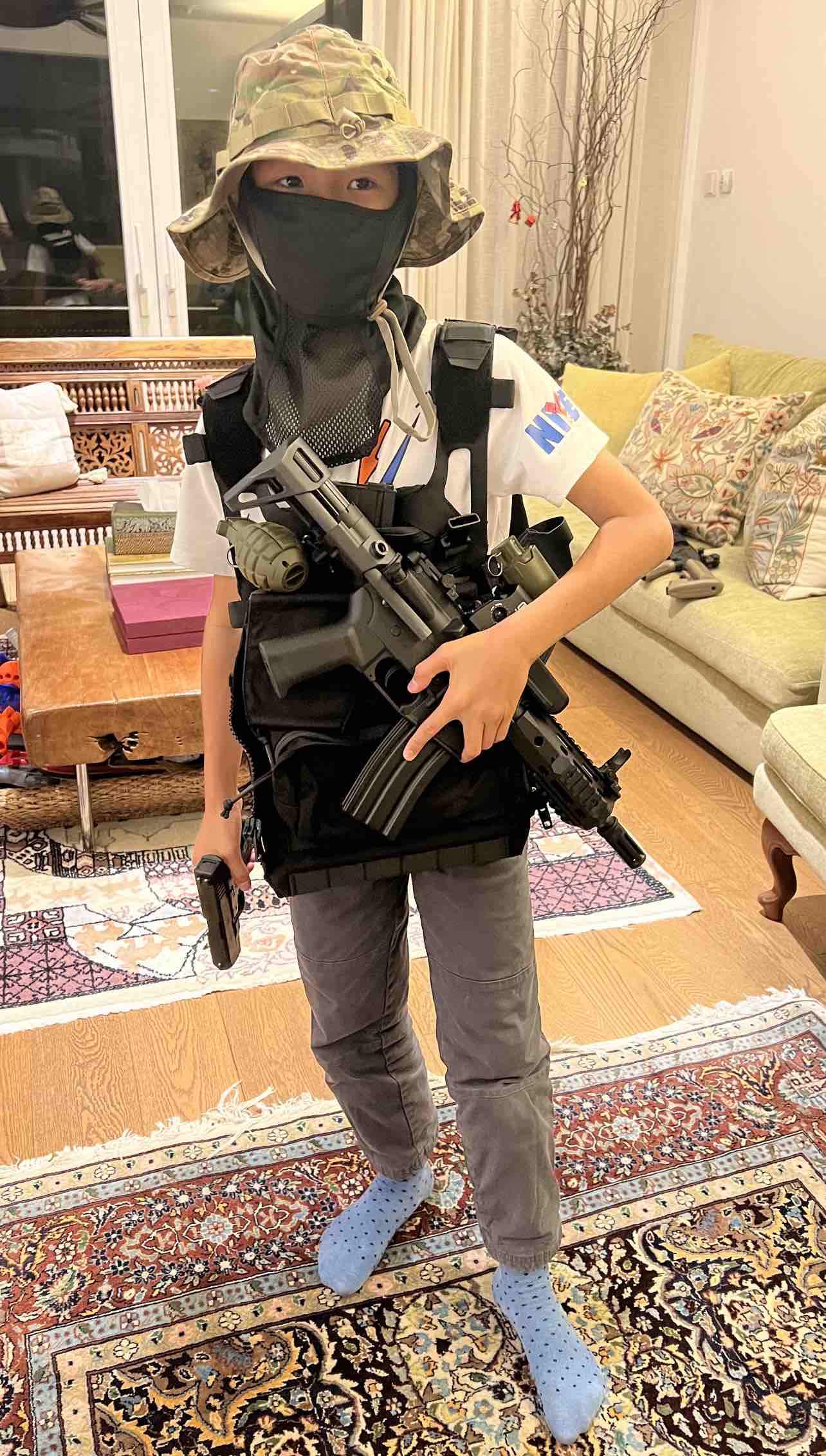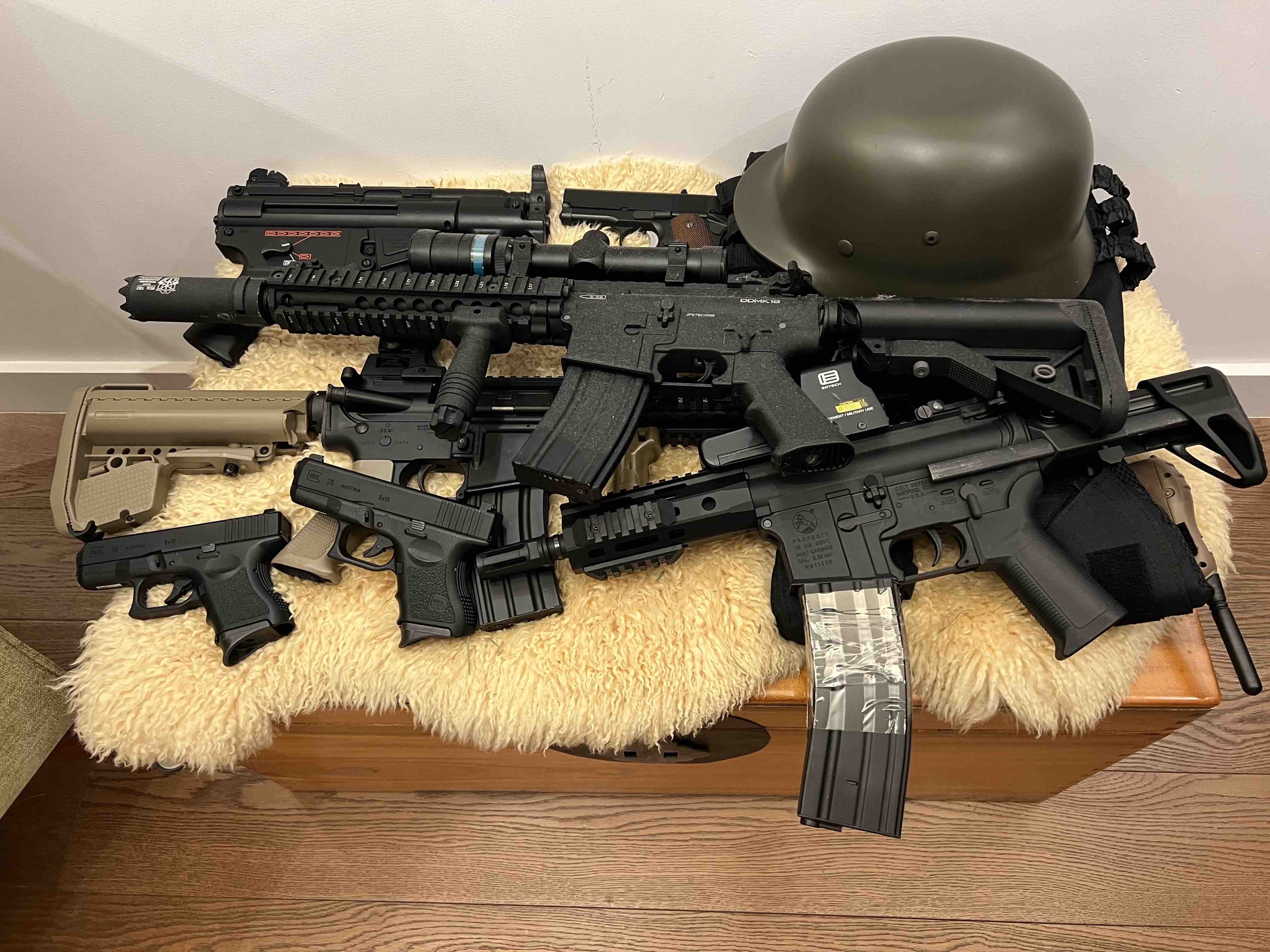 the jack has an arsenal red-dots and scope etc work per real, very heavy (all gun-steel), but no, have not bought any BBs and compressed -air or batteries (for semi-automatic and automatic firing) that he and his friends have a blast at battle-play