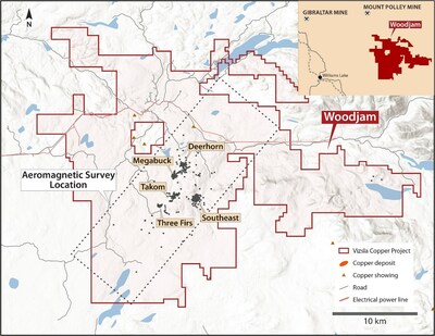 VANCOUVER, BC, Jan. 11, 2023 /CNW/ - Vizsla Copper Corp. (TSXV: VCU) (OTQB: VCUFF) ("Vizsla Copper" or the "Company") has kicked off its exploration efforts at the newly acquired Woodjam Copper Project ("Woodjam") with a high-definition aeromagnetic geophysical survey. Woodjam is prospective for copper and copper-gold porphyry style mineralization and is located 55 km east of Williams Lake, BC (Figure 1). Results of a core drilling program at the Carruthers Pass Project ("Carruthers Pass") are also reported.