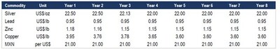 The following table outlines metals prices and foreign exchange assumptions used in the economic analysis.