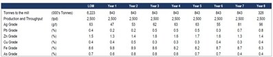 Set out below is a summary of the life of mine ("LOM") production schedule based on the PEA2.