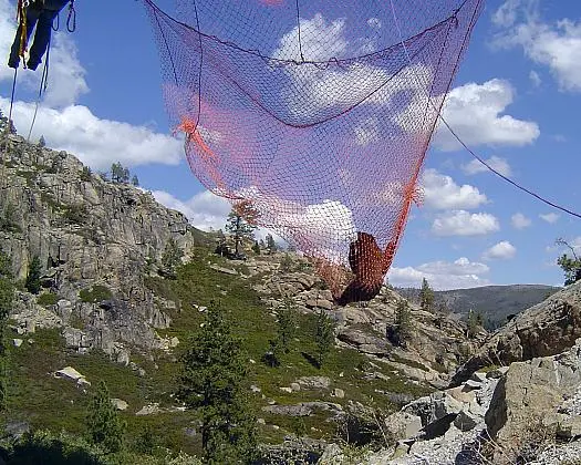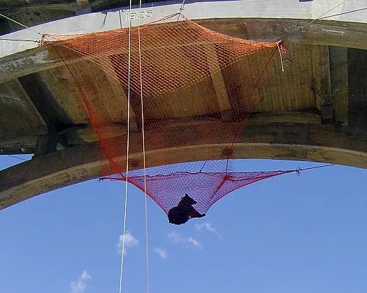 Volunteers strung a nylon net from an Army surplus store beneath the 80-year-old span, and an animal control officer shot the bear with a tranquilizer dart.