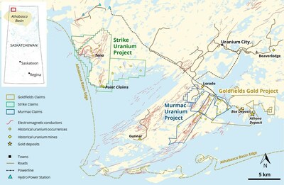 HALIFAX, NS, Jan. 23, 2023 /CNW/ - Fortune Bay Corp. (TSXV: FOR) (FWB: 5QN) (OTCQX: FTBYF) ("Fortune Bay" or the "Company") is pleased to announce analytical results from a prospecting program completed in Fall 2022 on the 100% owned Murmac Uranium Project ("Murmac" or the "Project"), located in northern Saskatchewan (see Figure 1).