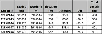 Table 1. Drill hole location information for the 2022 drilling is reported in this press release.