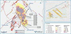 VANCOUVER, BC, March 1, 2023 /CNW/ - Vizsla Silver Corp. (TSXV: VZLA) (NYSE: VZLA) (Frankfurt: 0G3) ("Vizsla" or the "Company") is pleased to report drill results from 14 infill holes targeting the Copala resource area at its 100%-owned, flagship Panuco silver-gold project ("Panuco" or the "Project") located in Mexico. The reported results correspond to infill drilling in the southeast-central portion of the Copala structure, demonstrating high-grade precious-metals continuity within the Copala resource wireframe.