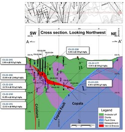 Drilling at Copala has now traced mineralization along approximately 1,100 metres of strike length and approximately 400 metres down dip. High-grade silver-gold mineralization remains open laterally to the north and southeast, as well as down dip to the east. The recently completed infill-drilling program consisted of 25 holes drilled at 25 metre centers designed to assess grade continuity and to provide sample material for metallurgical tests. Infill-holes CS-22-241, CS-22-246, CS-22-248 and CS-22-251 reported today, have confirmed strong continuity of structures and high-grades at tighter drill-hole spacing.