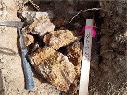 The East Curlew target is located approximately 230 metres east of the historic Blackhawk mine, in the footwall of the projected Curlew Fault. The Blackhawk mine was mined to the 1200-foot level and remains in mineralization with an approximate 375 metre strike length at the 1200-foot level, this being supported from underground maps secured from the past operator. The East Curlew target at near surface is a complimentary target to the Blackhawk mine as it may have the potential to open future mining opportunities at the Blackhawk mine with a successful near surface and at depth drilling campaign at East Curlew.