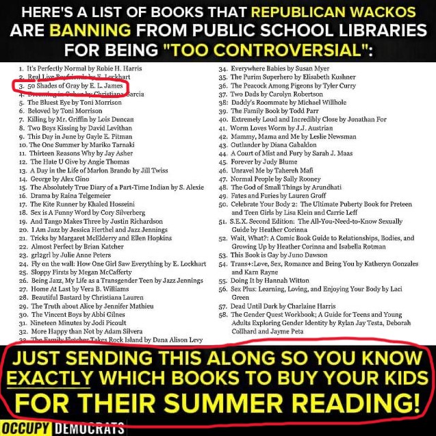 Occupy Dumbocrats just told parents to buy "50 Shades of Grey" for their kids to read over the summer.