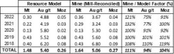 Figure 6: Changes to Haile Inferred Resources (CNW Group/OceanaGold Corporation) Table 4: Haile Open Pit Resource Model Performance, 2018 to 2022 (CNW Group/OceanaGold Corporation)