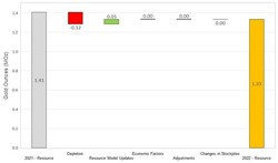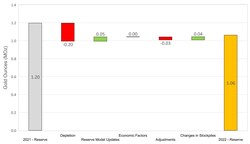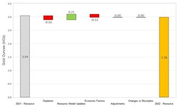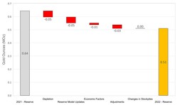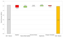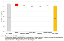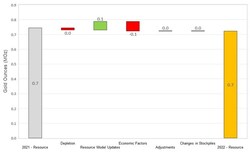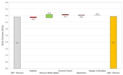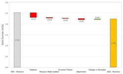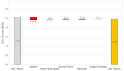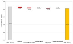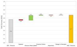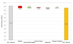 On a consolidated basis, M&I Resources decreased by 0.54 Moz relative to year-end 2021 (Figure 2). Decreases were due to mining depletion across the Company's operations, as well as revised resource classification and mining assumptions at Martha Underground and slight reduction in the open pit resource due to increased cost inputs at Haile. The decreases were partially offset by gains due to resource conversion drilling at Palomino, Golden Point Underground, and Didipio.