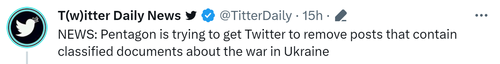 This as Twitter confirmed the Pentagon is requesting that it act fast to remove posts containing the highly classified documents, including photos of charts of anticipated arms deliveries, about the war in Ukraine...