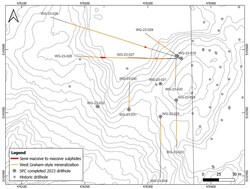 Hole WG-23-026, intersected 2.48% Ni, 0.64% Cu over 7.8 metres within a larger 143.0 metre wide zone (see Table 1) of 'West Graham-style' mineralization consisting of 5 to 20% disseminated to blebby sulphides.Individual massive sulphide samples returned values as high as 5.88% Ni over 0.57 metres (see Table 2).Hole WG-23-020, intersected 0.53% Ni, 0.27% Cu (0.63% NiEq) over 44.0 metres (see Table 1).To date, fourteen holes for 2,097 metres have been completed (See Figure 1). Assays from all holes not listed in Table 1 are pending. Grant Mourre, CEO and President of SPC Nickel commented, "We are excited to announce the first assay results from our current drilling on the Crean Hill 3 side of the West Graham Project. These results demonstrate two important facts: first, the massive sulphide intersected in hole WG-23-026 confirms that the property has the potential to host high-grade, high-tenor nickel-copper massive sulphides between the previous wide spaced drilling completed in the 1950's; and second, the results to date of our infill drilling has returned thick intervals of nickel and copper mineralization that is consistent with or better than the historic indicated and inferred resource. Given that we have only just started the infill drilling program with many holes left to drill, we're excited to continue to grow and expand the mineralized zone on the West Graham Property."