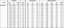 | Table 2: Individual sample results from the reported WG-023-026 sulphide intersection.