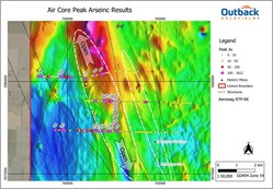 Figure 2 - Overview of drill results to date at the O’Connors zone, showing broad zones of highly anomalous arsenic. Note, only peak arsenic values above 250ppm are labelled. (CNW Group/Outback Goldfields Corp.)