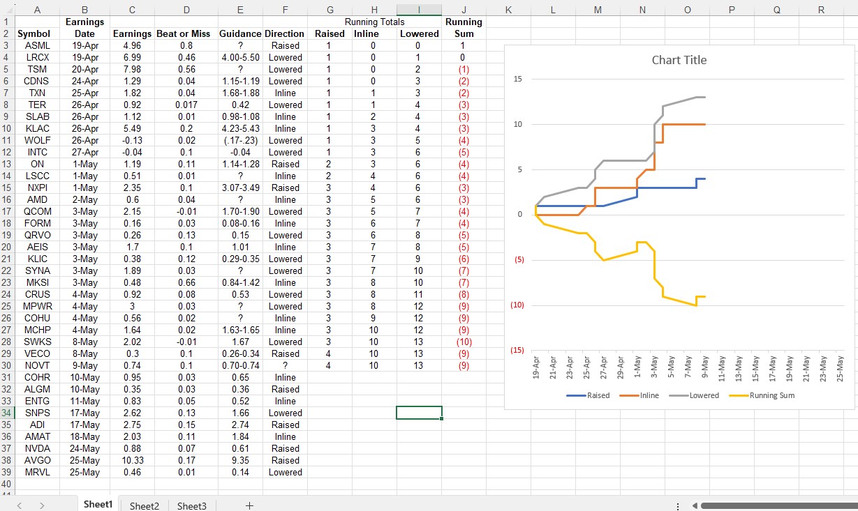 I added a Running Sum. Each quarter you could zero out the running totals starting at ASML then a new set of lines would continue on the x-axis that you keep running... say starting July 19, give or take, all zero