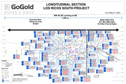 HALIFAX, NS, May 31, 2023 /CNW/ - GoGold Resources Inc. (TSX: GGD) (OTCQX: GLGDF) ("GoGold", "the Company") is pleased to announce additional drilling results from Los Ricos South, within the Eagle Deposit, including an exceptionally wide, high-grade intercept from hole LRGAG-22-165. The hole intercepted 50.0m of 1,126 g/t silver equivalent ("AgEq"), including 7.8m of 6,334 g/t AgEq which also included a very high-grade interval of 46,822 g/t AgEq over 0.8m. This is one of the best holes drilled to date within the Los Ricos district. See Table 1 for breakdown of silver and gold values.