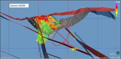 Figure 2. Reward Expansion Potential, Section 4500 N Cross Section (CNW Group/Augusta Gold Corp.)