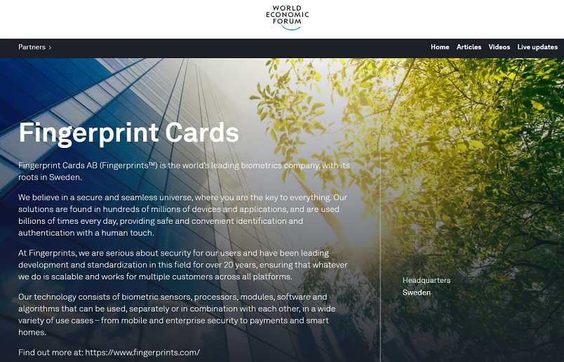| | Fingerprint CardsThe World Economic Forum is an independent international organization committed to improving the state of the wo...