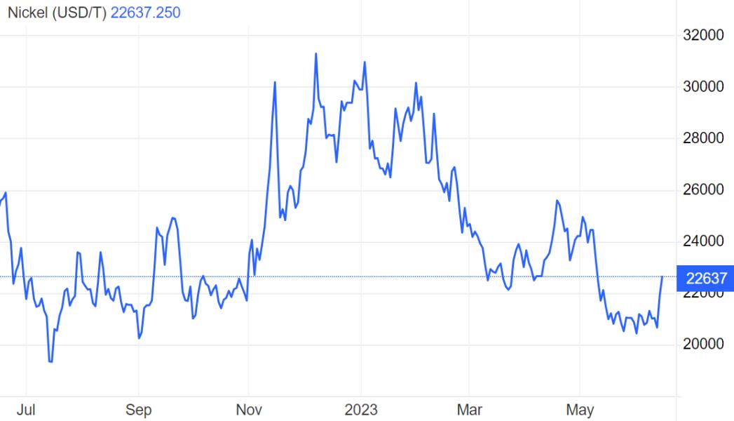 Market IndexNickel 12-month price chart (Source: TradingEconomics)