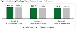 Figure 1. Preliminary Metallurgy Work - Texmont Recovery Performance. (CNW Group/Canada Nickel Company Inc.)