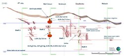 Figure 1 - Longitudinal of Prospect Mountain Mine Complex with Historic Drill Hole WS02 (CNW Group/North Peak Resources Ltd.)