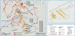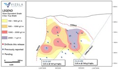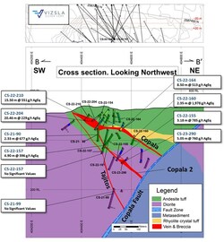VANCOUVER, BC, July 13, 2023 /CNW/ - Vizsla Silver Corp. (TSXV: VZLA) (NYSE: VZLA) (Frankfurt: 0G3) ("Vizsla" or the "Company") is pleased to report new drill results from 20 expansion holes targeting the Copala resource area at its 100%-owned, flagship Panuco silver-gold project ("Panuco" or the "Project") located in Mexico. The reported results expand the Copala mineralized footprint laterally by ~370m to the southeast and ~50m to the north.