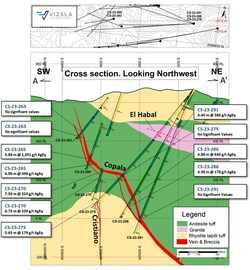Additionally, Vizsla geologists have detected a new near-surface structure named "El Habal" in the southeast with hole CS-23-291. The team is in the process of a re-logging and sampling campaign of other holes in the area to model this new blind structure.