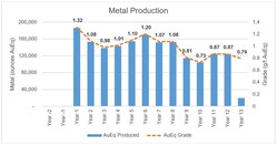 The PEA examined several mining scenarios with varying rates of production and cut-off grades and determined that a 12.2-year LOM and 61.3 million mineralized tonnes demonstrate robust financial returns using consensus metal prices. Refer to Figure 1 for the metal production profile.