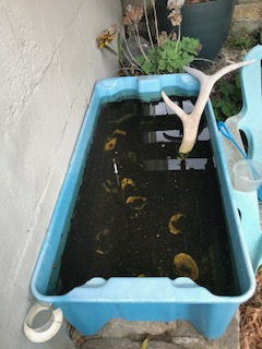 antler is chipmunk escape ladder......clam shells to buffer water....a bit over 40 gal.... ~ 42 x 20 x 14