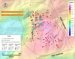 Details (See Figures 1-3) This press release outlines results from surface reconnaissance exploration work undertaken at the newly discovered Plutus Porphyry Centre ("Plutus"). Plutus is located 500 metres to the east of the Apollo Porphyry in an area with very sparse outcrop due to landslide and ash cover. Results and observations from Plutus are summarized below.
