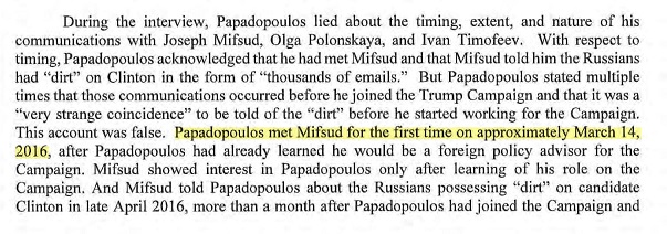 So, Mifsud knew Papa had joined Trump while it was still a secret. This proves that Brennan's crew was already spying on the Trump campaign in March 2016.