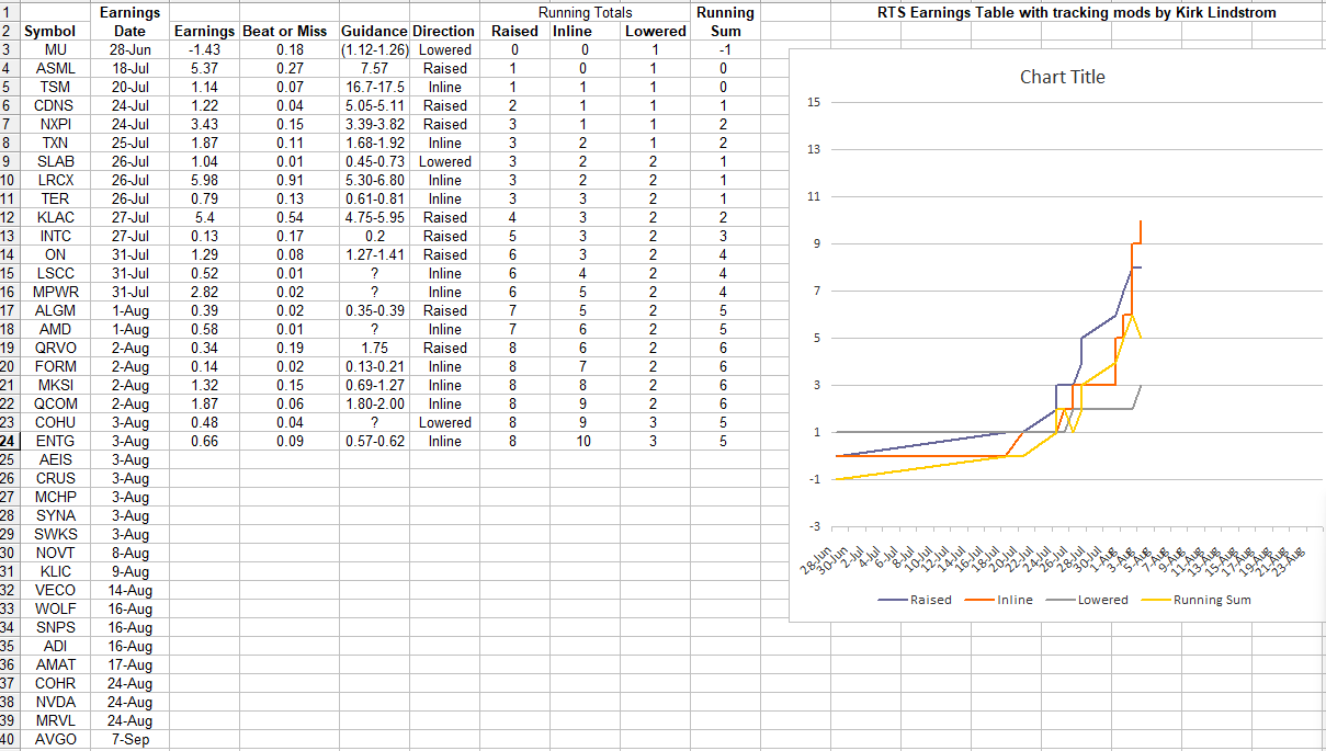 Earnings' Table Update including COHU's Lowered Guidance and ENTG's Inline Outlook: