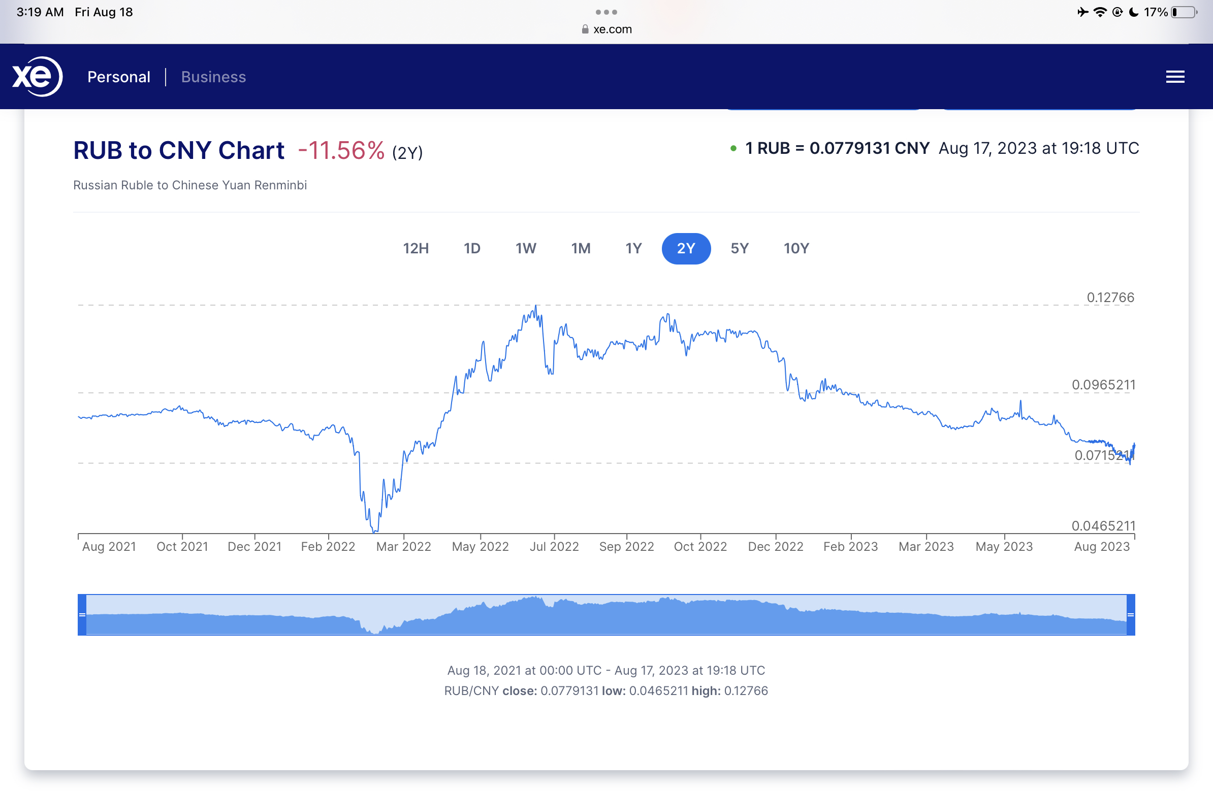 By the 2-years chart all-OK, for the Ruble : USD drama is halved (scroll down for Ruble : USD chart) relative per the Ruble : CNY chart