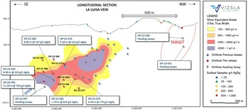 VANCOUVER, BC, Sept. 11, 2023 /CNW/ - Vizsla Silver Corp. (TSXV: VZLA) (NYSE: VZLA) (Frankfurt: 0G3) ("Vizsla Silver" or the "Company") is pleased to report results from 13 new drillholes targeting the recently discovered La Luisa Vein located ~700 metres west of the Napoleon Area resource, at its 100%-owned flagship Panuco silver-gold project ("Panuco") in Mexico. The new drill results at La Luisa have expanded the local high-grade footprint by approximately 350 metres to the south and confirmed shallow vein mineralization located 500 metres along strike to the north.