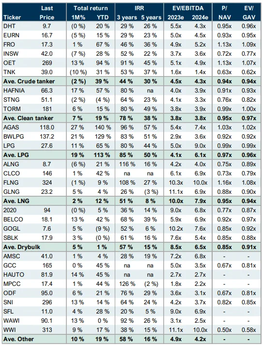 Non-Tech : Shipping - Oil & Gas Tankers, Dry cargo, LNG
