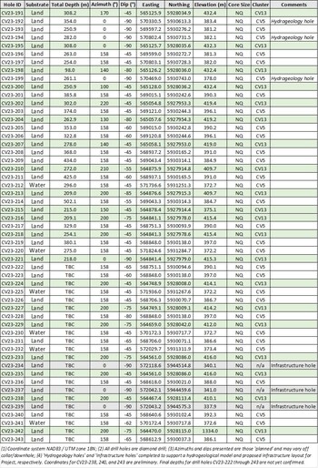 - NQ size core diamond drilling was completed for all holes. Core was not oriented.