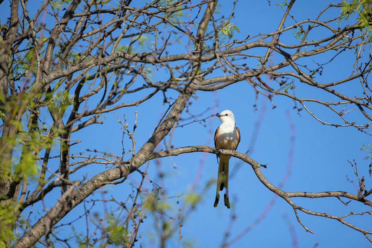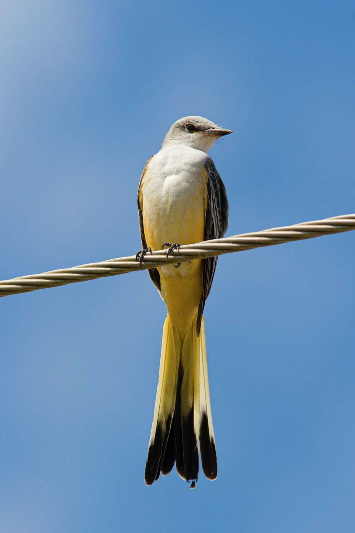 The handsome 9-inch-long flycatchers, with bright bifurcated tails, earned the folk name “Texas bird of paradise,” despite being the state bird of Oklahoma.