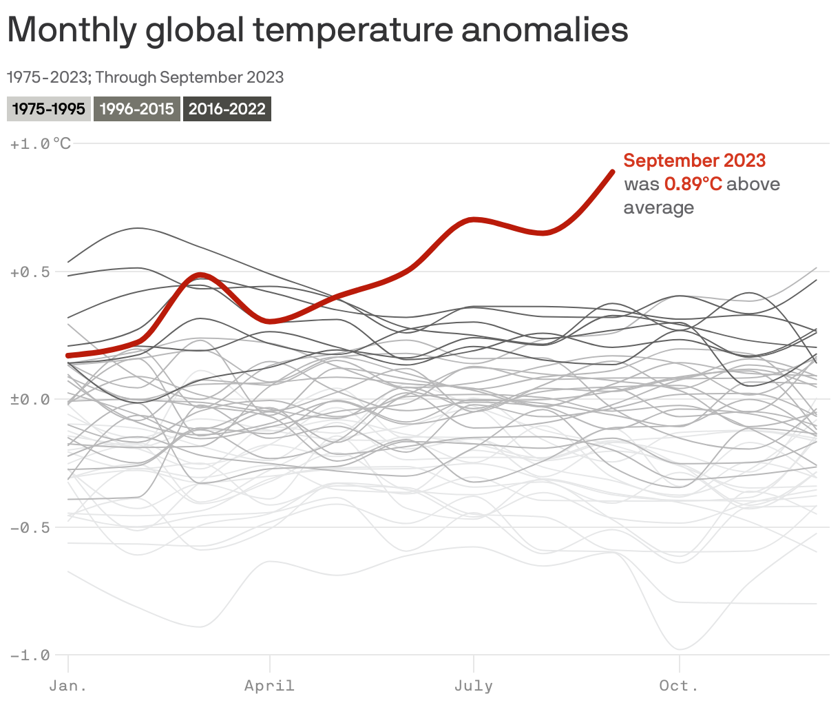 The planet has shattered heat records in recent months. But even by the standards of a sizzling summer, September's temperature anomaly stands out, Axios extreme-weather expert Andrew Freedman writes.