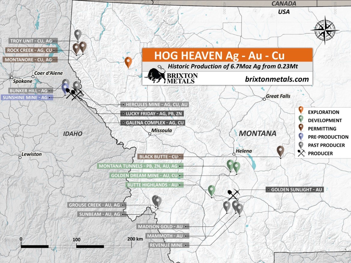 VANCOUVER, British Columbia, Oct. 10, 2023 (GLOBE NEWSWIRE) -- Brixton Metals Corporation (TSX-V: BBB, OTCQB: BBBXF) (the “Company” or “Brixton”) is pleased to announce initial results from the 2023 Exploration Program on the Hog Heaven Project, which is currently being operated by Ivanhoe Electric Inc. Under a definitive earn-in JV Agreement, Ivanhoe Electric Inc. holds the option to acquire up to 75% interest in the project by incurring USD$40 million of project expenditures and paying Brixton USD$4.5 million. Hog Heaven is a high-sulphidation, epithermal copper-silver-gold project with large scale porphyry copper potential and with historical production located in the state of Montana, USA.