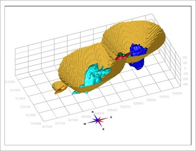 Figure 1 Mineralized Shapes and Resource Pit – Promontorio (CNW Group/Kootenay Silver Inc.)