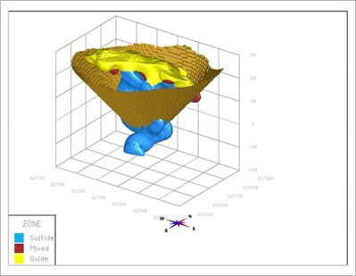 At La Negra one domain has been modeled and it has been split into three oxidation zones based on logging data. The shapes are illustrated in Figure 2.