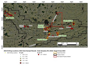 David Christie, President and CEO of Orford, commented "The Orford team had a successful summer 2023 exploration program, in that Orford discovered two new gold bearing vein systems in the Central Intrusion/Ammaluttuq Fault and Gerfaut East areas. The high grade Annick Trend RAB drilling increased our team's understanding of the geology and potential at Annick. Orford's exploration team also has given the potential at the Esperance copper gold zone an entirely new level of prospectivity for size potential. We look forward to the 2024 program at Qiqavik to thoroughly test these new systems which are exposed in outcrop and have vast underexplored potential. It is important to remember that before Orford started exploring the Qiqavik Belt there was almost no historic exploration on the belt and the prospect remains largely unexplored as we have not yet found the bedrock source for the high-grade gold mineralized boulders that occur extensively across the property."