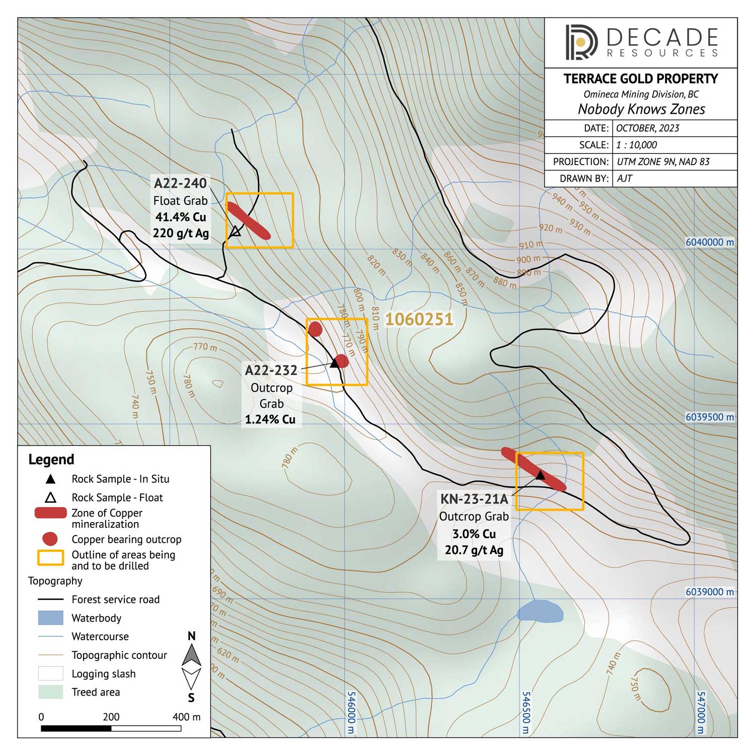 DECADE CONFIRMS DISCOVERY ON THE NOBODY KNOWS COPPER PROJECT AND UPDATES SURFACE EXPLORATION AT TREASURE MOUNTAIN, TERRACE BC