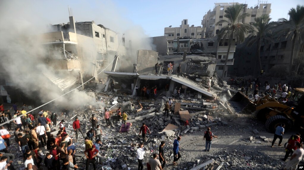 Palestinians look for survivors following an Israeli airstrike at the Khan Younis refugee camp, southern Gaza Strip, Nov. 7, 2023.