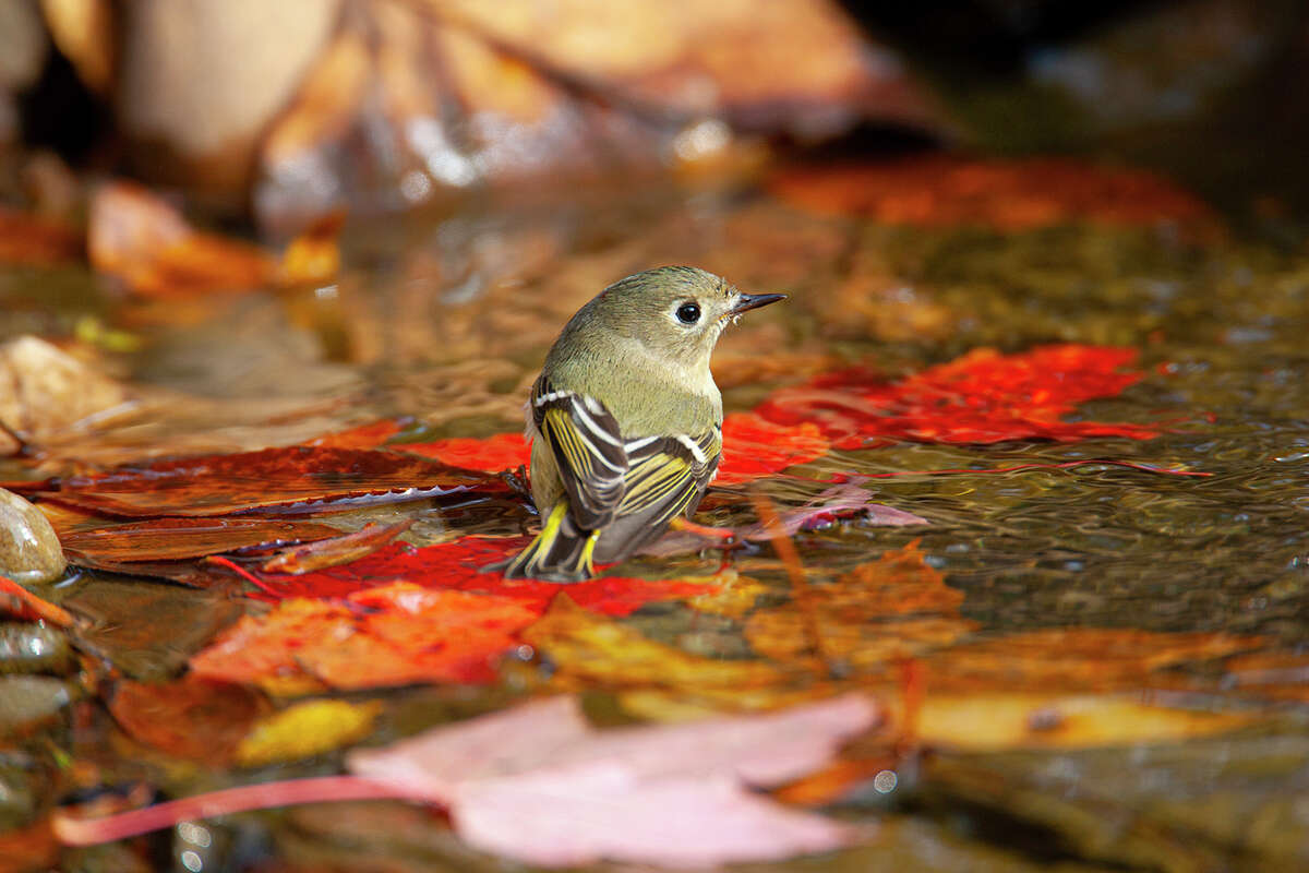 Ruby-crowned kinglets are the tiny, frenetic visitors in Houston backyards
